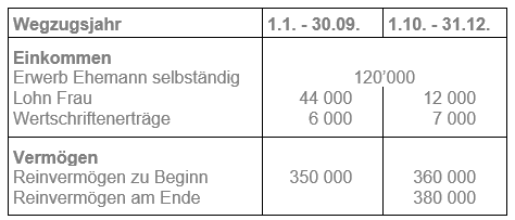 Klara und Fritz Müller verlegen ihren Wohnsitz sowie das Geschäft des Ehemannes am 30. September vom Kanton Thurgau in den Kanton St. Gallen. Die Einkommens- und Vermögensverhältnisse zeigen folgendes Bild: