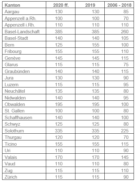 Auf der Grundlage von Erhebungen der Schweizerischen Steuerkonferenz (SSK) in den Kantonen hat die Konferenz der kantonalen Finanzdirekten auf die Steuerperiode 2019 hin eine Änderung der interkantonalen Repartitionswerte beschlossen. Bis und mit der Steuerperiode 2018 geltend noch die bisherigen Repartitionswerte.