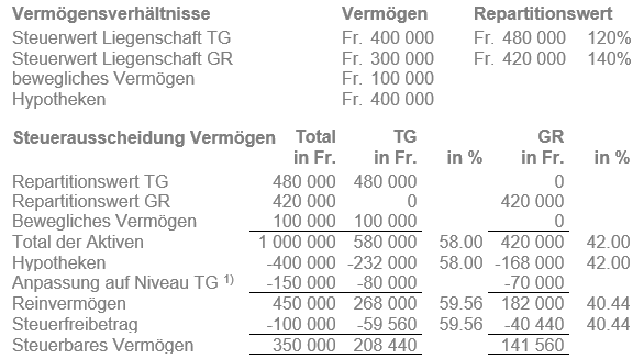 GR: Repartitionsabschlag = Fr. 420 000 : 120% - Fr. 420 000 = - Fr. 70 000