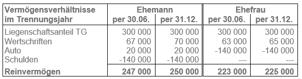 Das Reineinkommen und das Reinvermögen des Ehemannes bis zum Trennungsdatum wird für die Bemessung nicht berücksichtigt.