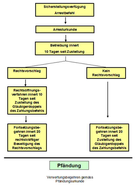 Ein Arrestverfahren kann auch als flankierende Massnahme zu einem bereits eingeleiteten Betreibungsverfahren erfolgen. Die Fortsetzung der Betreibung richtet sich nach der Verarrestierung der entsprechenden Vermögenswerte nach Artikel 279 Absätze 2 und 3 SchKG.
