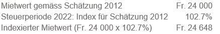 Steuerlich massgebend ist der indexierte Mietwert. Die Indexierung der Mietwerte kann auf der Homepage der Kantonalen Steuerverwaltung abgefragt werden. Der für die Steuerperiode massgebende indexierte Mietwert ist aber auch auf der Liegenschaftensteuerrechnung vom Januar des Folgejahres ersichtlich.