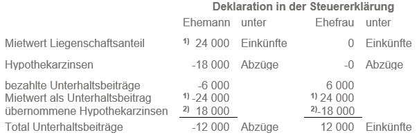 Sowohl beim Ehemann als auch bei der Ehefrau gilt der Mietwertanteil des Ehemannes ohne Selbstnutzungsabzug als periodischer Unterhaltsbeitrag für die unentgeltliche Überlassung der Liegenschaft.