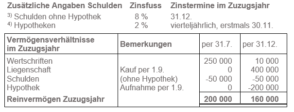 Die steuerpflichtige Person kauft im Zuzugsjahr per 1. September am neuen Wohnsitz eine Liegenschaft (Mietwert selbstgenutzt pro Jahr Fr. 14'400).